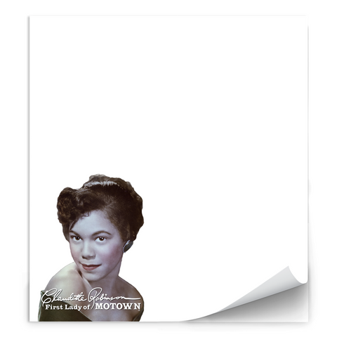 This notepad featuring Claudette Robinson, First Lady of Motown™ is a functional keepsake that will remind you of the magic of Motown on a daily basis! Taking notes just got more fun. Each notepad has a hard cardboard backing and contains 50 single-sided tear away pages.